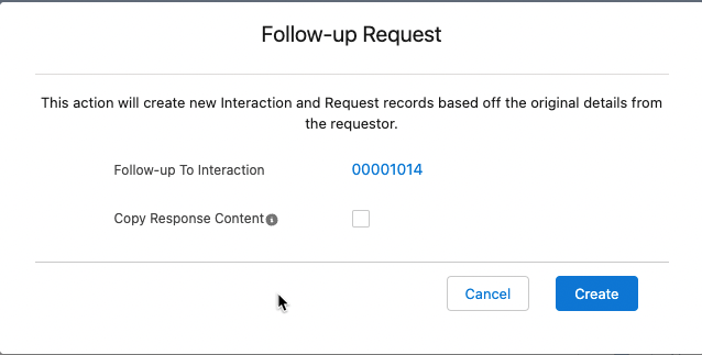 Click Create. You are automatically brought to the new Request page within the new Interaction.