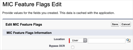 Locate the MIC Feature Flag custom setting within the Salesforce administrative user interface.