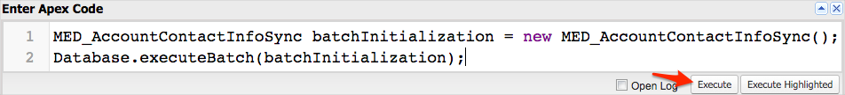 MED_AccountContactInfoSync batchJob = new MED_AccountContactInfoSync();``Database.executeBatch(batchJob); -