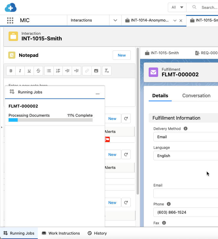 A Fulfillment record is a child record of an Interaction. From a Fulfillment record, you can create a package of information to send via email, mail, or fax to the Account that submitted the inquiry. A Fulfillment Package includes: