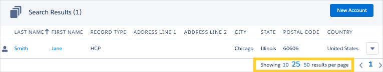 • MED_Account_Search__c (Account Search Page). Note: Account search is only supported when launched as a sub-tab under an Interaction and not as a top-level navigation item (such as the Home Page).
