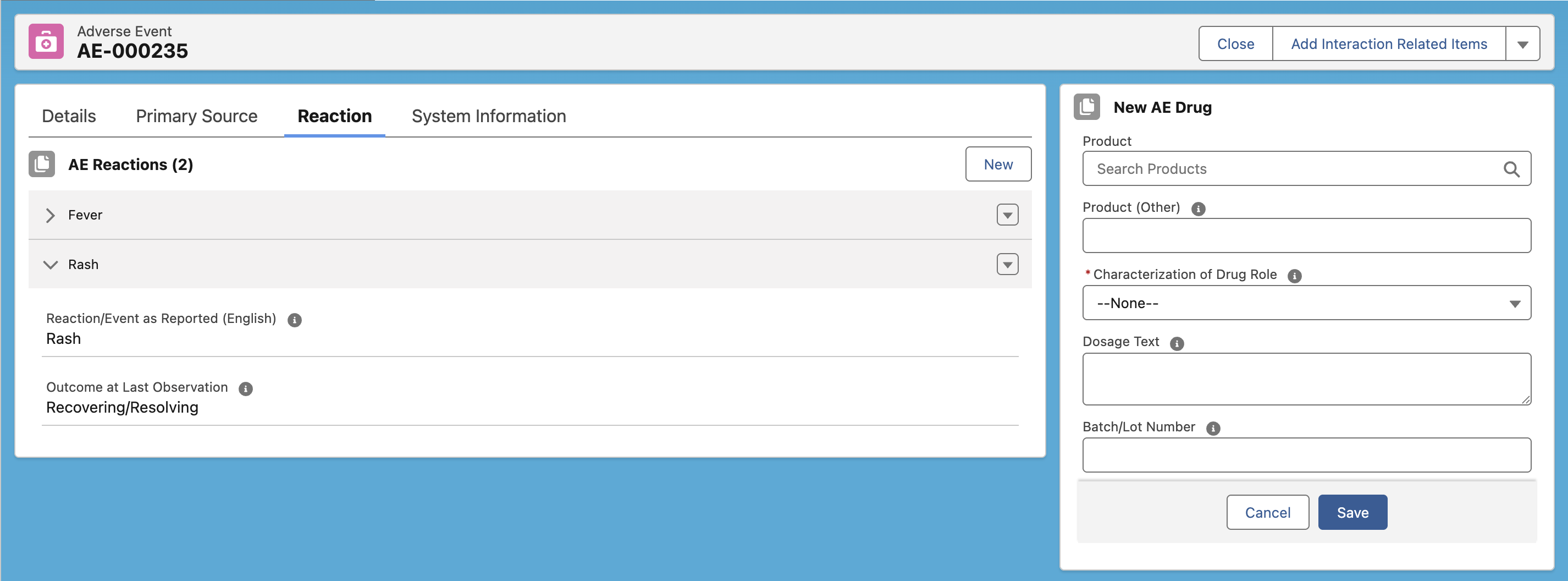 • MED_Adverse_Event__c (Adverse Event Detail)
