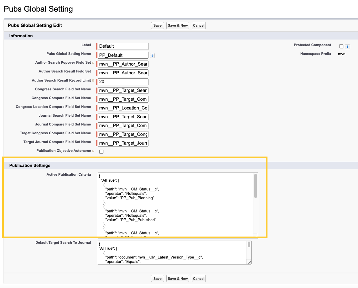 In Setup, navigate to the Pubs Global Setting (