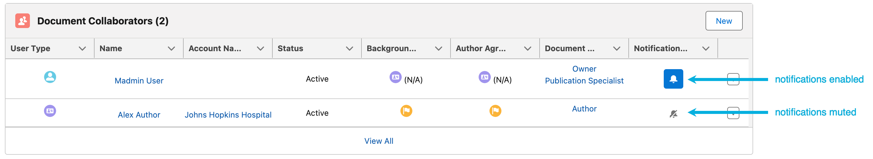 Note: You only need to complete the migration script if you are upgrading the product (e.g., from version 1.19.0.4) to the Spring '23 release. The migration script only applies to publication documents, not supporting documents, and will only create Document Collaborator records for the roles that do not already have the corresponding records. There should be only one Document Collaborator record per user and per document.